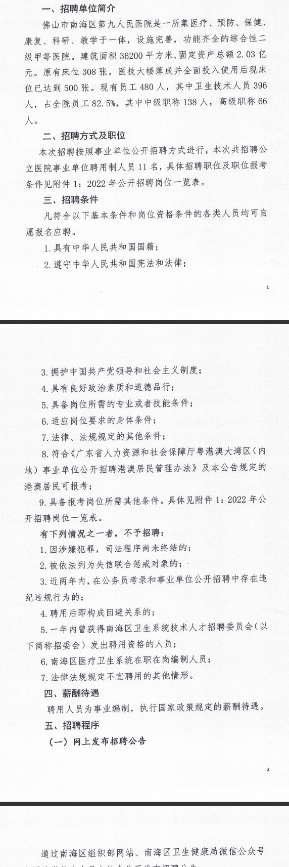 佛山市南海區(qū)第九醫(yī)院2022年招聘事業(yè)單位聘用制工作人員11名