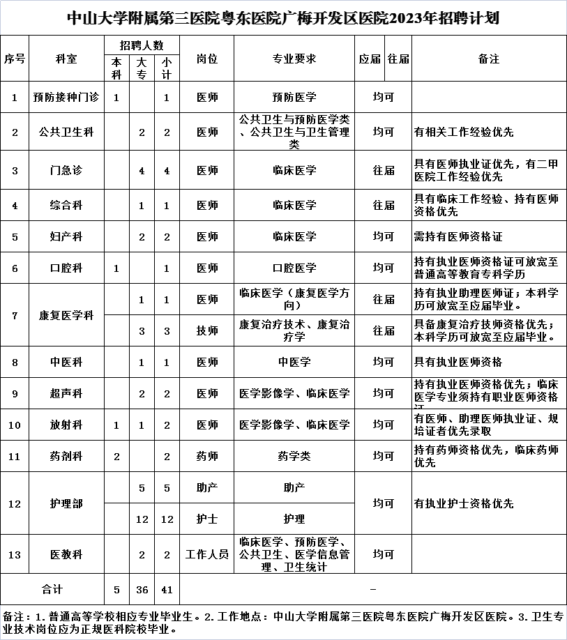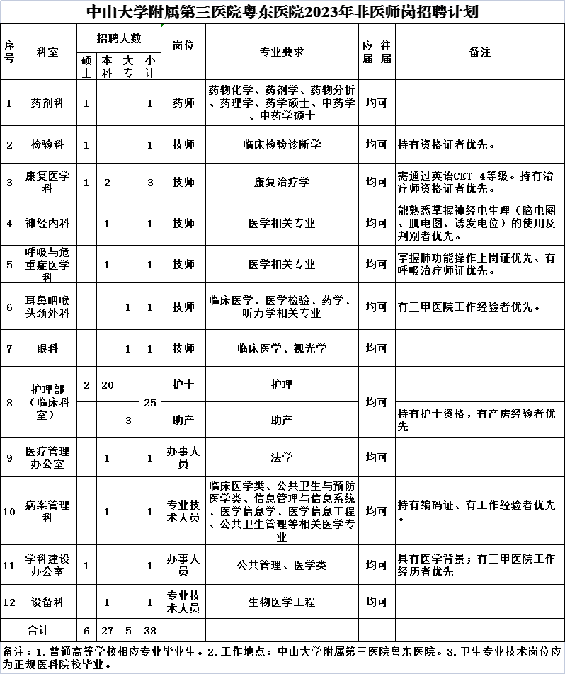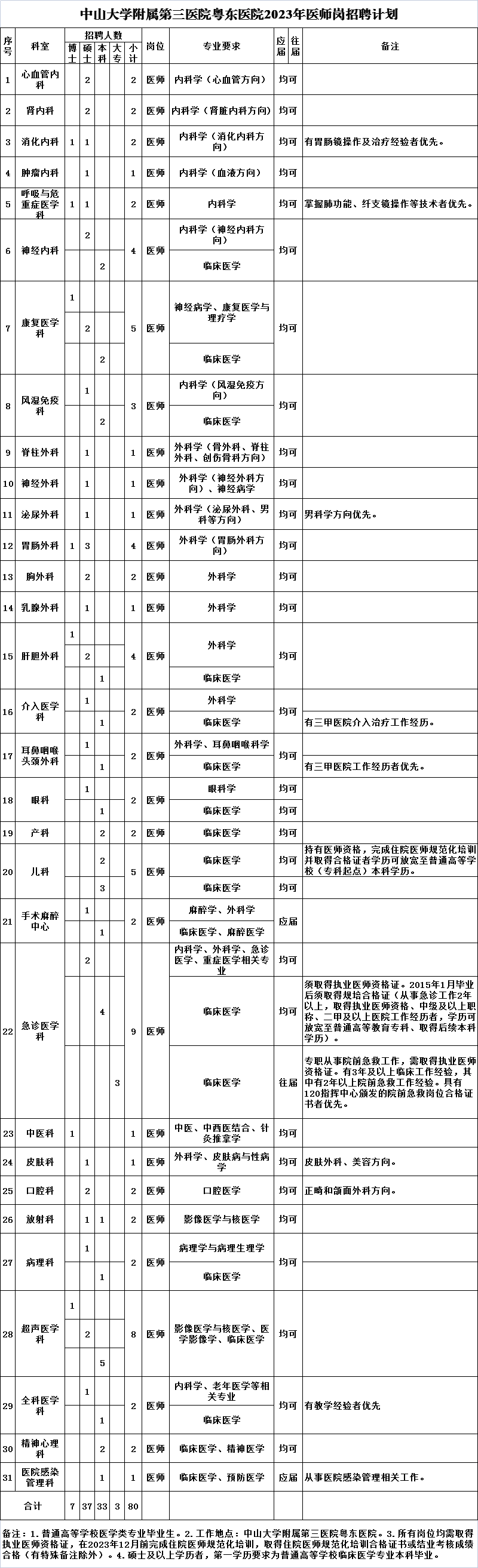 中山大學(xué)附屬第三醫(yī)院粵東醫(yī)院2023年招聘工作人員159人