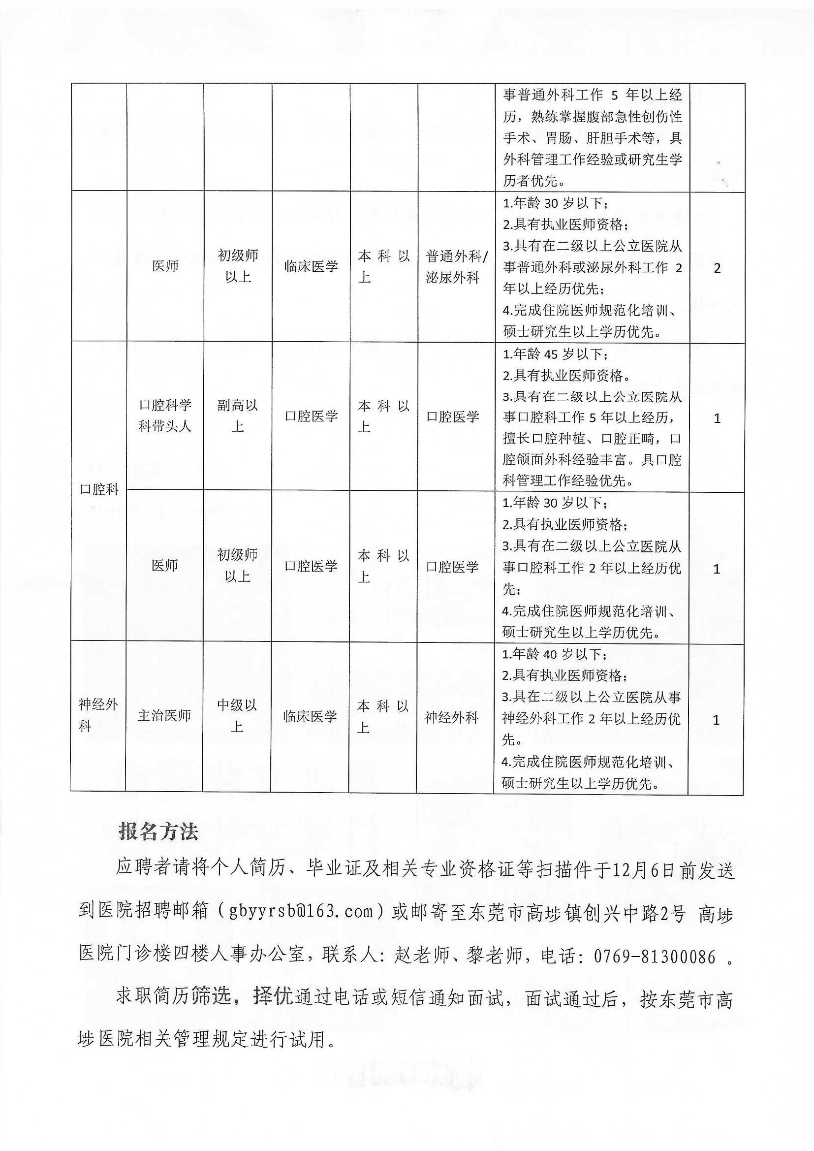 廣東省東莞市高埗醫(yī)院2022年招聘工作人員12人