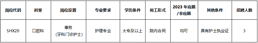 中山大學孫逸仙紀念醫(yī)院深汕中心醫(yī)院因工作需要,面向社會公開招聘口腔科牙科門診護士合同事務(wù)崗位3名,現(xiàn)將有關(guān)事項公布如下: