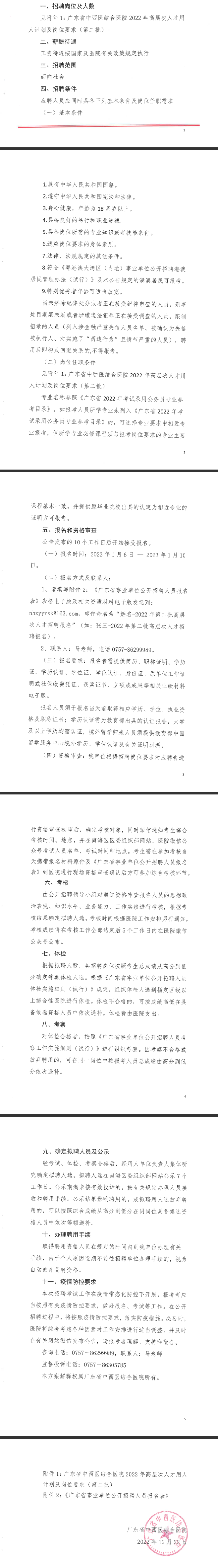 附件1.廣東省中西醫(yī)結(jié)合醫(yī)院2022年高層次人才用人計劃及崗位要求(第二批)