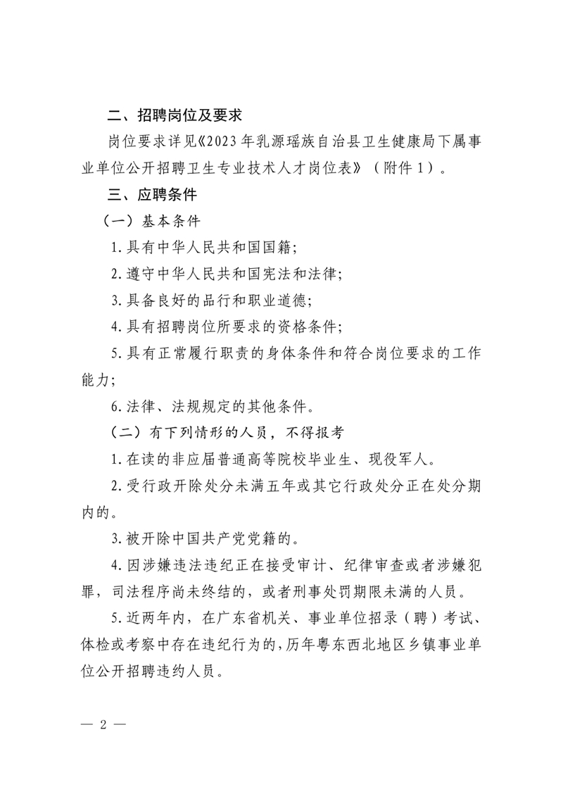 附件1:2023年乳源瑤族自治縣衛(wèi)生健康局下屬事業(yè)單位公開招聘衛(wèi)生專業(yè)技術(shù)人才崗位表
