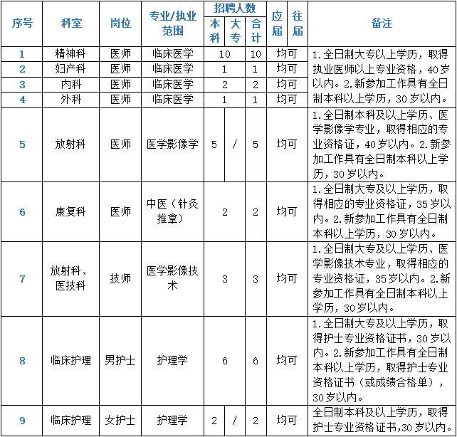 (五)適應崗位要求的身體條件,醫(yī)學專業(yè)技術人員能勝任醫(yī)療一線夜班工作;