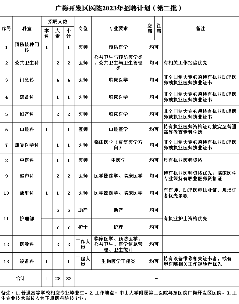 中山大學(xué)附屬第三醫(yī)院粵東醫(yī)院廣梅開發(fā)區(qū)醫(yī)院2023年招聘32人