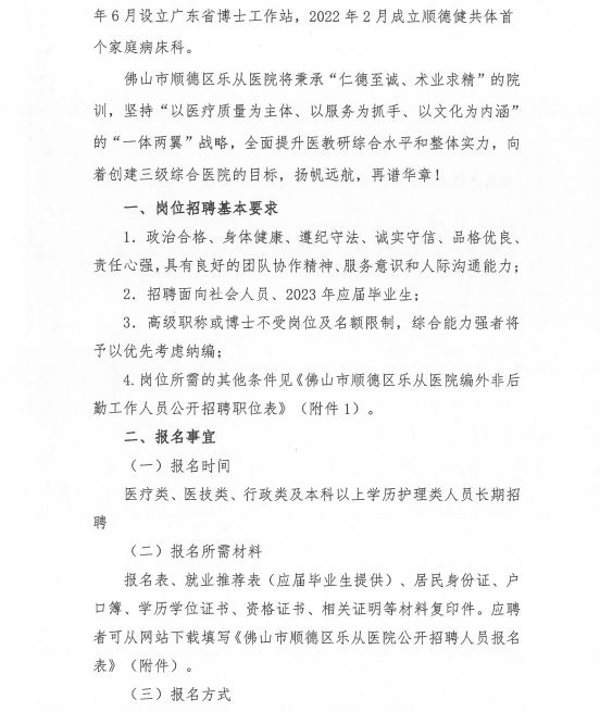 附件1:佛山市順德區(qū)樂從醫(yī)院2023年公開招聘工作人員職位表(第42期20230515發(fā)布)