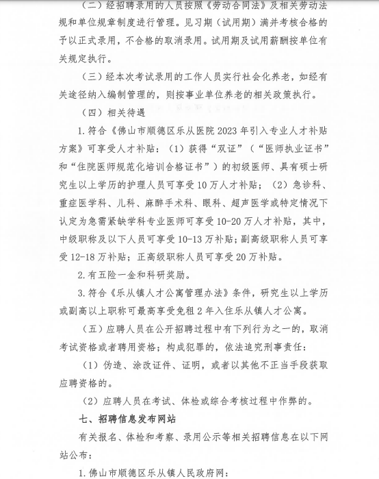 附件3:佛山市順德樂從醫(yī)院2023年引入專業(yè)人才補貼方案