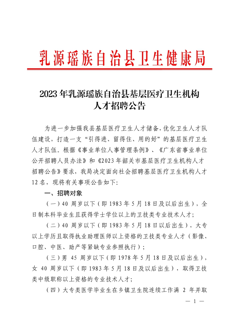 廣東省韶關市乳源瑤族自治縣招聘基層醫(yī)療衛(wèi)生機構人才12名