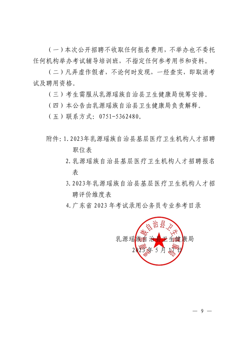 附件1.2023年乳源瑤族自治縣基層醫(yī)療衛(wèi)生機構人才招聘職位表