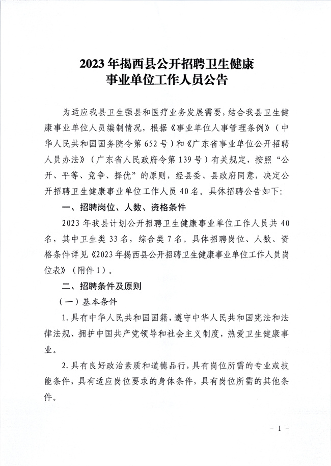 廣東省揭陽市揭西縣2023年招聘衛(wèi)生健康事業(yè)單位工作人員40人