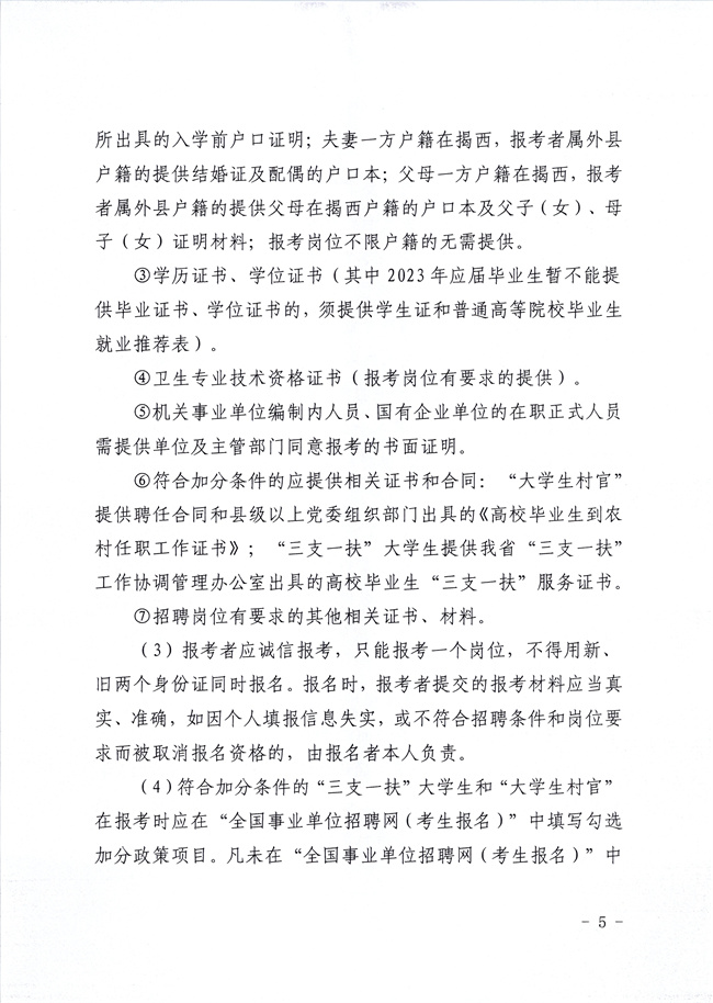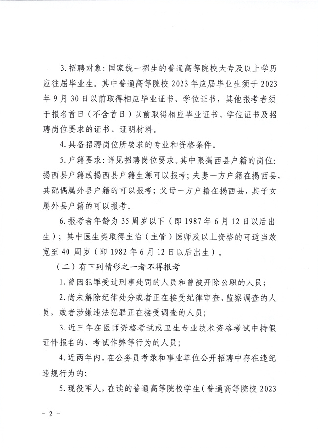 附件1:2023年揭西縣公開招聘衛(wèi)生健康事業(yè)單位工作人員崗位表