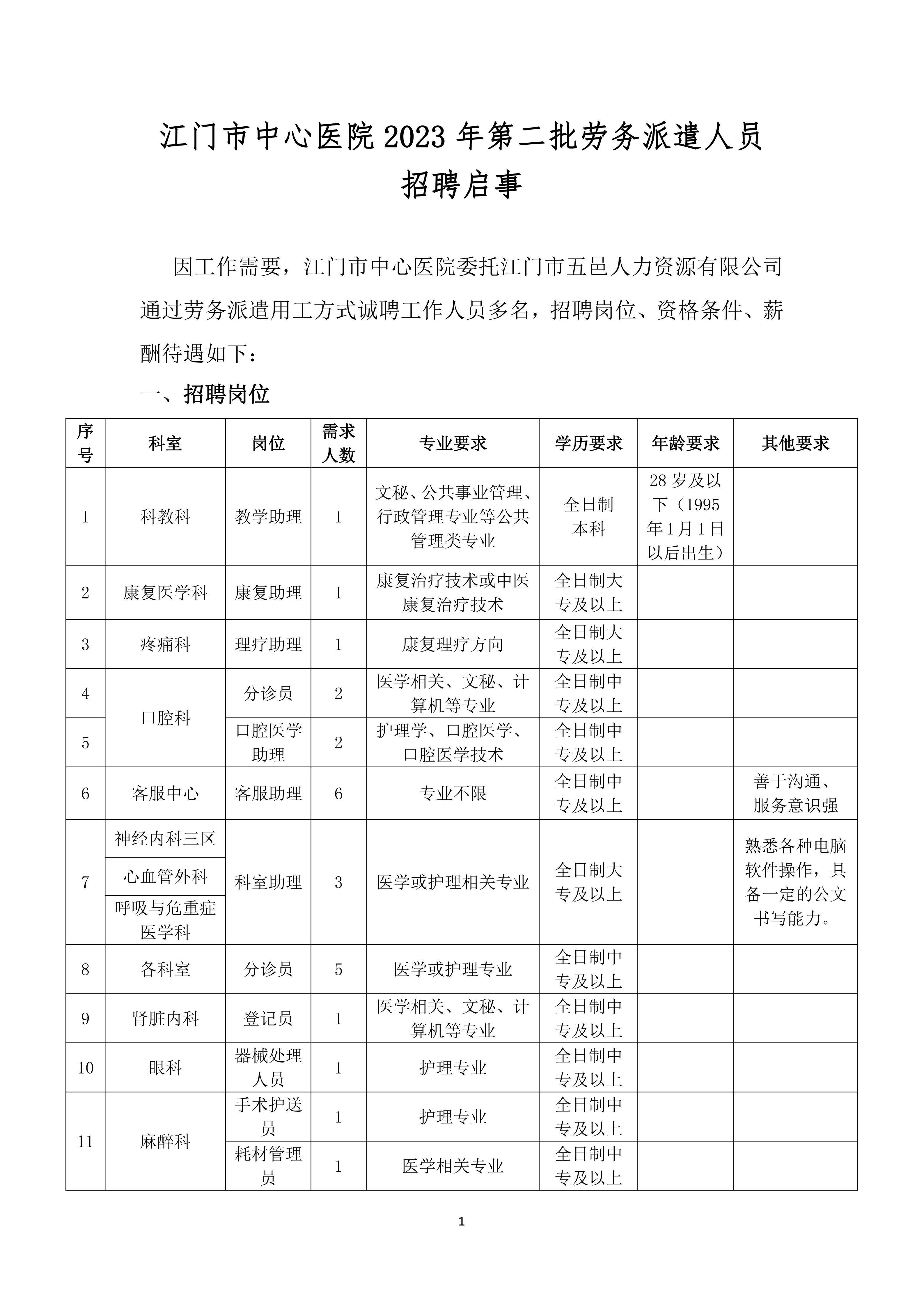 廣東省江門市中心醫(yī)院2023年第二批招聘勞務(wù)派遣人員31人