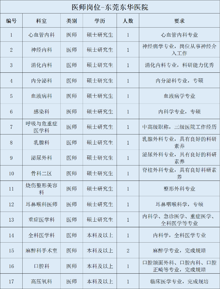 地 址:廣東省東莞市東城東路1號東華醫(yī)院醫(yī)技樓六樓人力資源部