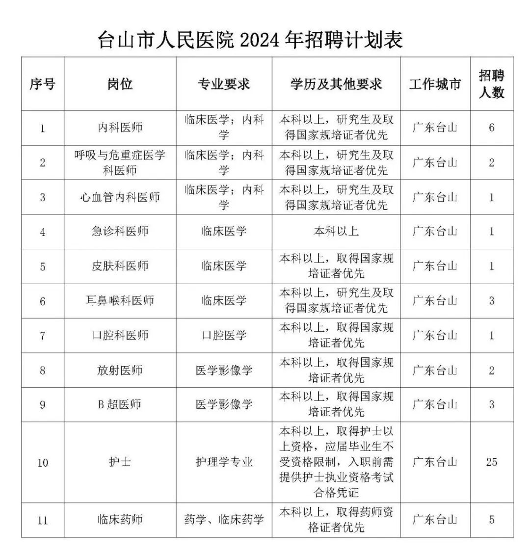 臺山市人民醫(yī)院2024年第一批招聘專業(yè)技術(shù)人員50人