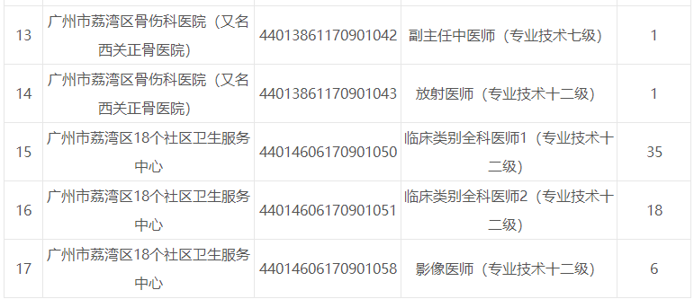 根據《2021年廣州市荔灣區(qū)衛(wèi)生健康系統(tǒng)事業(yè)單位公開招聘工作人員公告》及有關規(guī)定和報名情況,以下崗位報名人數未達到開考比例,為確保招聘工作正常開展,現(xiàn)延長部分招聘崗位報名時間。具體如下: