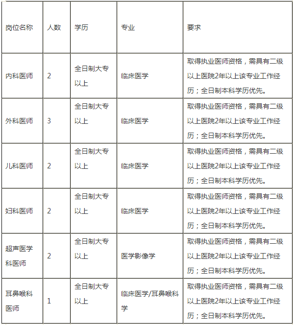注:以上崗位均為高新區(qū)門、急診工作崗位。