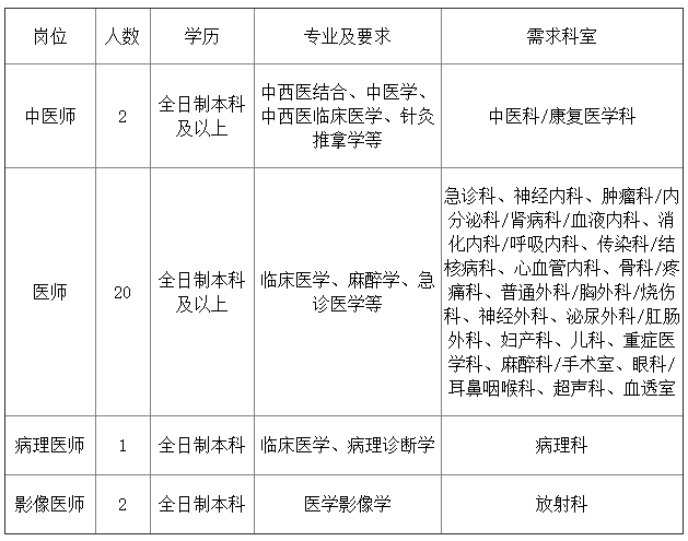 一、招聘醫(yī)務(wù)人員崗位一覽表