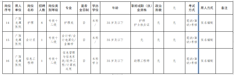 廣西壯族自治區(qū)龍?zhí)夺t(yī)院2021年度公開招聘42人崗位計劃表