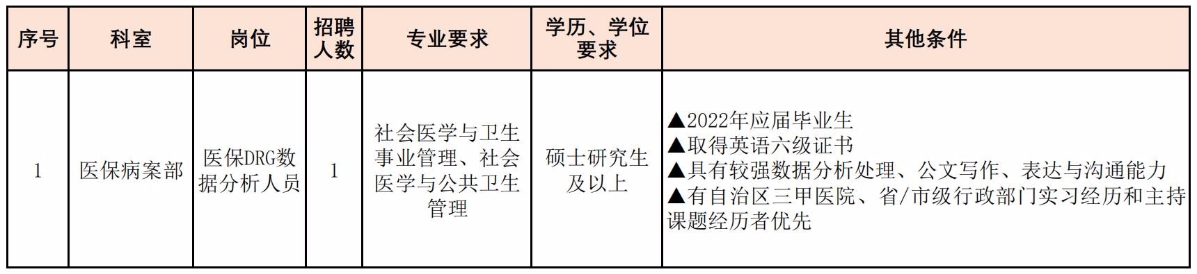 您是即將步入醫(yī)療行業(yè)的相關(guān)從業(yè)者嗎?您還在為在哪里能夠看到醫(yī)療崗位招聘信息而煩惱嗎?您還在擔(dān)心看不到所在地區(qū)全面的醫(yī)療招聘公告信息嗎?小編告訴您一個好消息,醫(yī)學(xué)教育網(wǎng)為了服務(wù)廣大醫(yī)學(xué)崗位人員,每天特意整理搜集全國各地醫(yī)療招聘公告信息,以下就是新鮮的公告通知:桂林醫(yī)學(xué)院附屬醫(yī)院2022年9月招聘醫(yī)保病案部工作人員1名,歡迎查看。