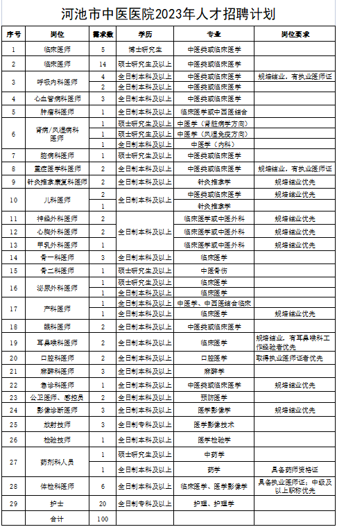 廣西河池市中醫(yī)醫(yī)院2023年招聘各類人才100名