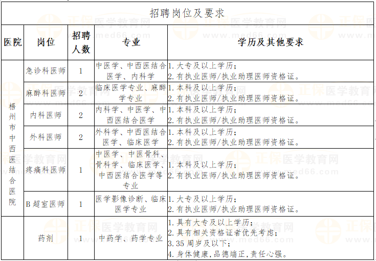 廣西梧州市中西醫(yī)結(jié)合醫(yī)院2023年招聘醫(yī)師9名、藥劑1名
