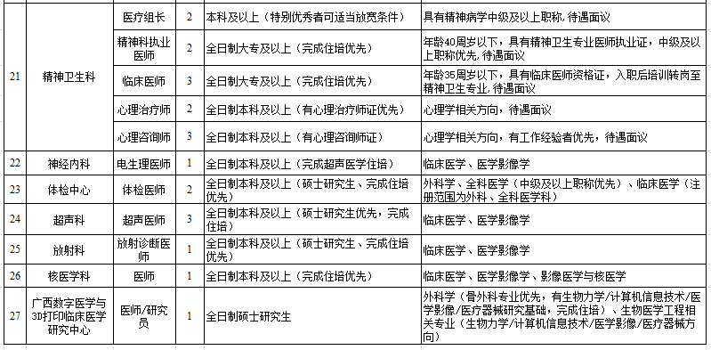 (三)應(yīng)聘醫(yī)師崗位、技術(shù)崗位的往屆生要求有三甲醫(yī)院工作經(jīng)歷或住培經(jīng)歷(特別優(yōu)秀者除外)。