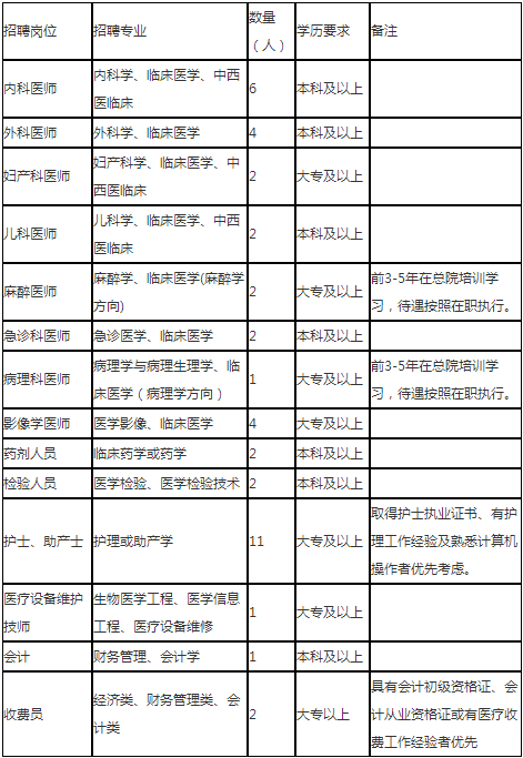 因醫(yī)院業(yè)務(wù)發(fā)展需要,我院現(xiàn)面向社會公開招聘專業(yè)技術(shù)人員多名,具體招聘事項公告如下: