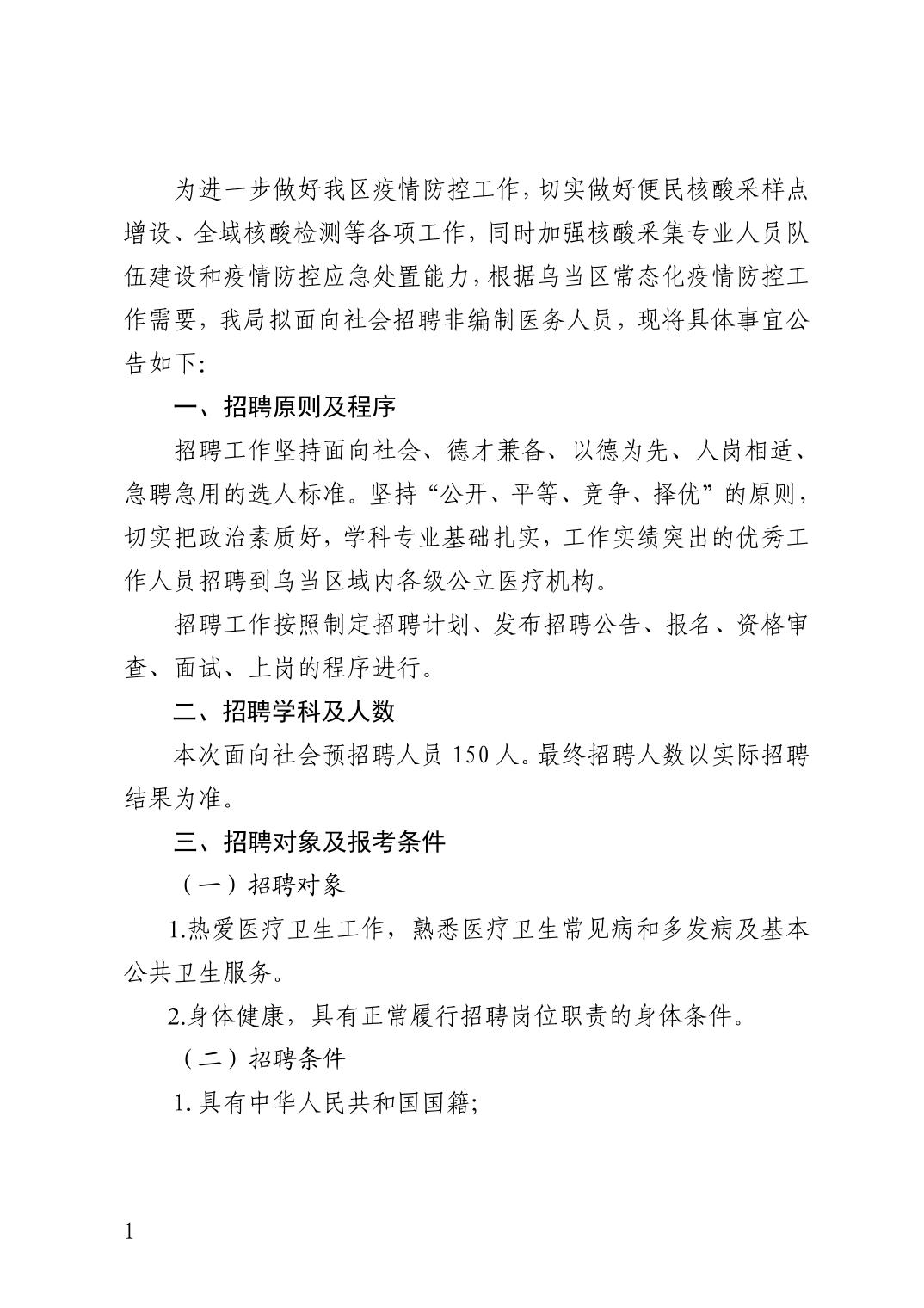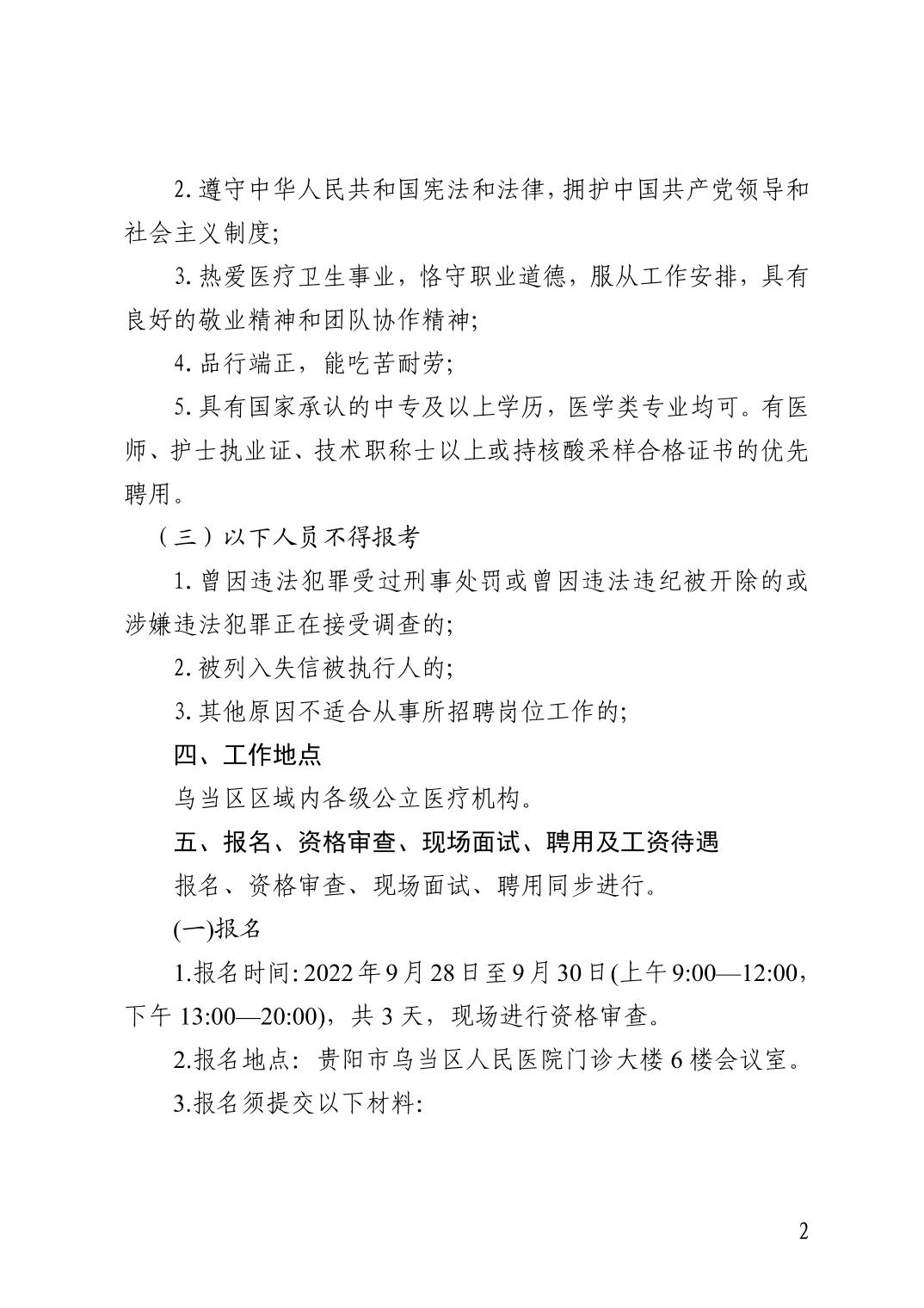 貴陽市烏當(dāng)區(qū)衛(wèi)生健康局2022年9月招聘非編制醫(yī)務(wù)人員150人