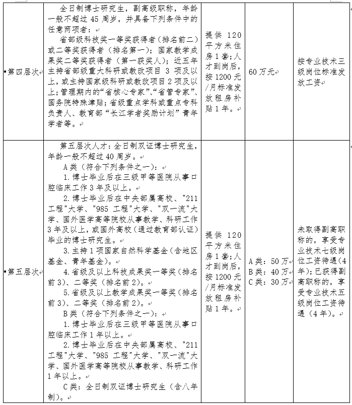 3、解決第一至第五層次人才配偶工作,全日制本科學歷學位且年齡不超過35周歲或碩士研究生且年齡不超過40周歲,按照貴州省人才政策,以事業(yè)編制安置其工作。非全日制本科學歷學位和全日制大專學歷的人才配偶,以醫(yī)院非編制職工安置工作,并按非編制職工發(fā)放相應待遇。