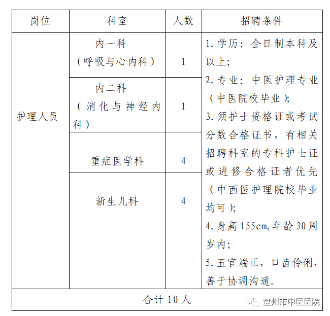 貴州省六盤水市盤州市中醫(yī)醫(yī)院2023年招聘編外護理人員10名