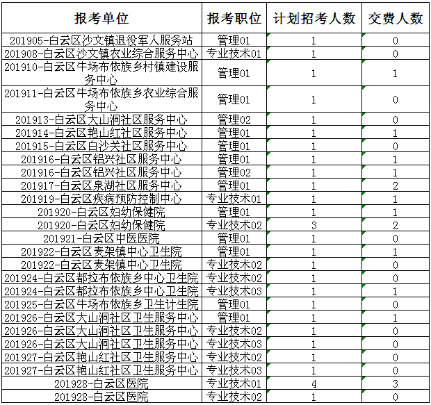 截止2019年8月19日16:00,報名人數(shù)(以繳費(fèi)人數(shù)為準(zhǔn))與崗位招聘計劃數(shù)達(dá)不到3:1比例的崗位如下: