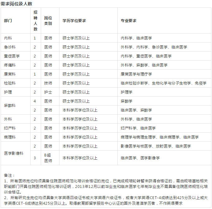 醫(yī)院將在白云區(qū)貴州金融北城建設(shè)一所技術(shù)水平精湛、服務(wù)能力出色、基礎(chǔ)設(shè)施完善、文化建設(shè)先進(jìn)、就醫(yī)環(huán)境優(yōu)美的高水平、現(xiàn)代化骨科龍頭醫(yī)療中心——貴州省骨科醫(yī)院白云醫(yī)院。貴州省第一家康復(fù)治療中心在我院掛牌,并將落戶(hù)新院區(qū),新醫(yī)院占地92畝,建筑面積16.5萬(wàn)平方米,設(shè)計(jì)床位1400張,康復(fù)治療中心床位400張,預(yù)計(jì)2020年投入使用,現(xiàn)我院新院區(qū)籌建工作已啟動(dòng),現(xiàn)根據(jù)工作需要,我院公開(kāi)招聘合同制職工35名(具體要求見(jiàn)下表)