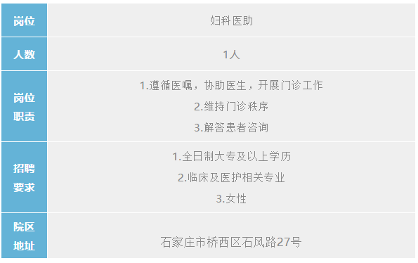 【醫(yī)療招聘】河北生殖婦產(chǎn)醫(yī)院招聘婦科醫(yī)助啦!具體內(nèi)容如下,希望能夠幫助到您!