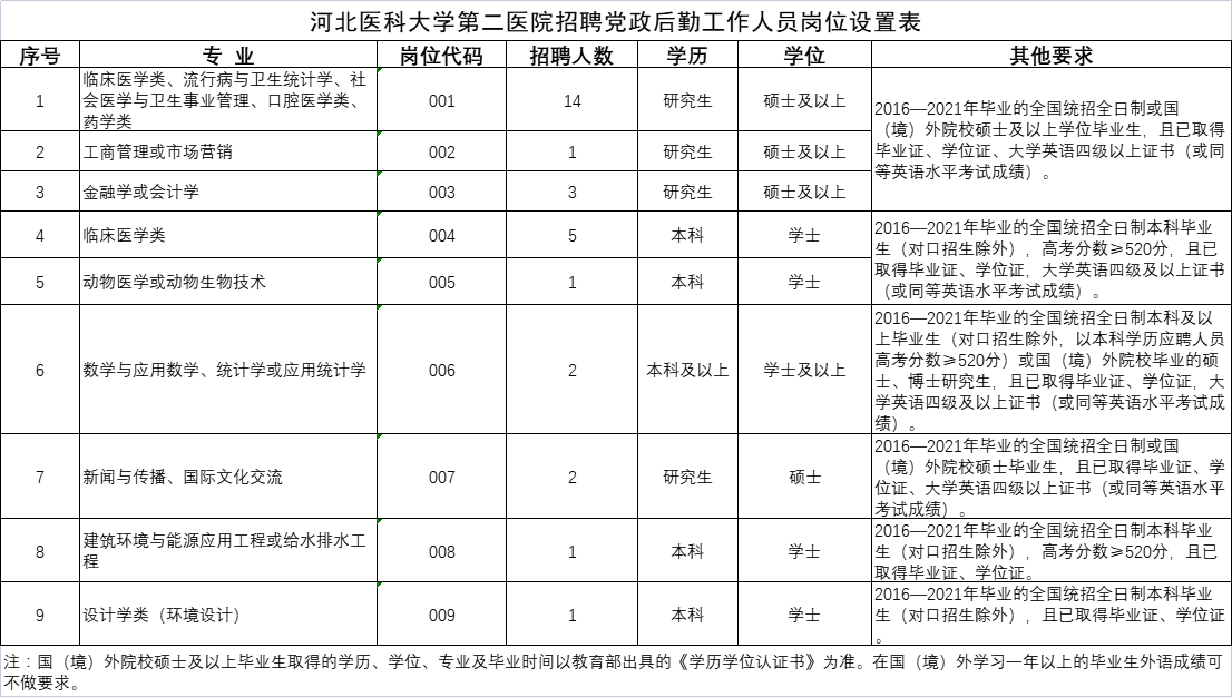 河北醫(yī)科大學(xué)第二醫(yī)院招聘黨政后勤崗位工作人員30名