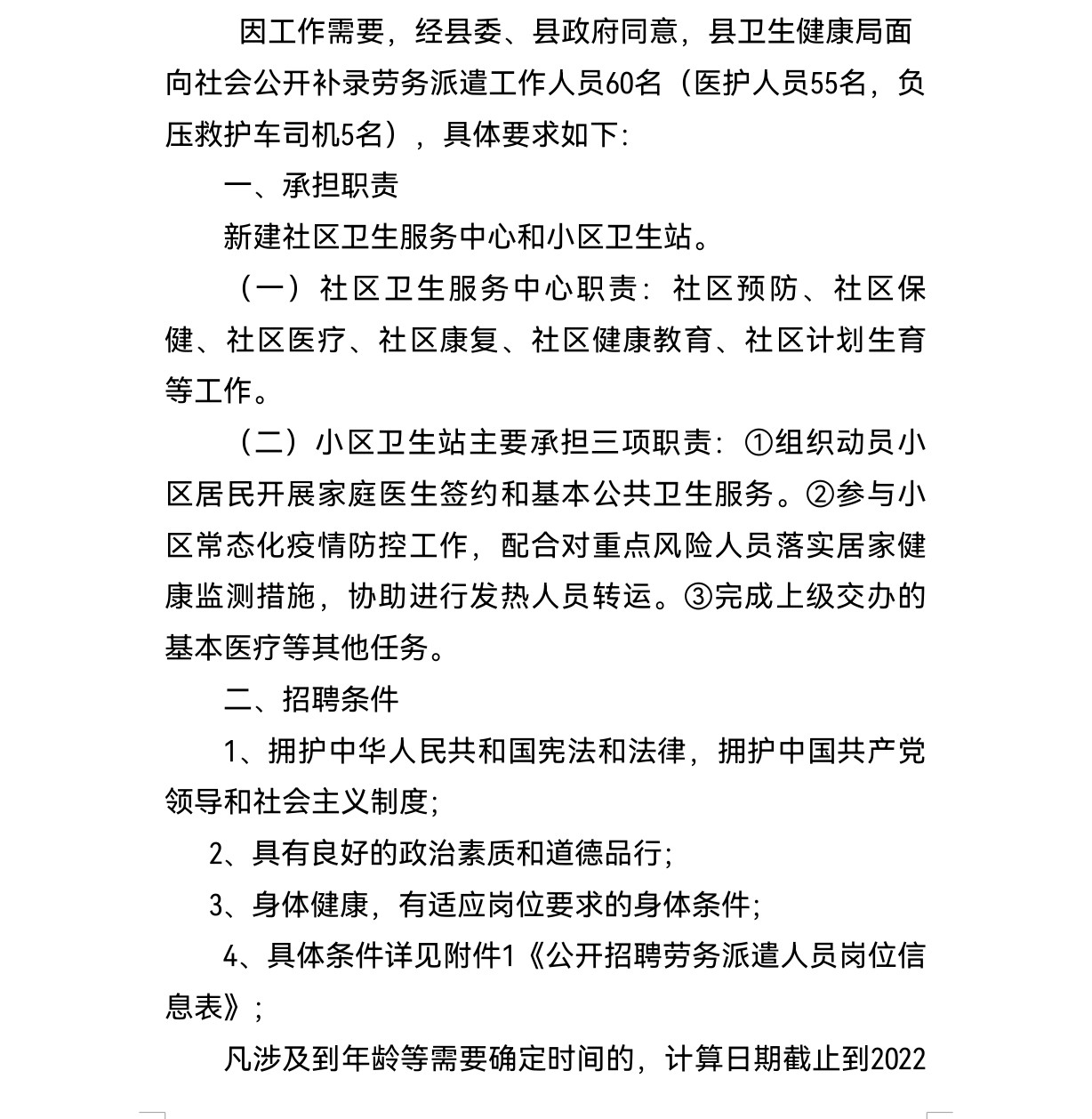 很多即將步入醫(yī)療崗位的朋友們都非常關(guān)注所在地區(qū)醫(yī)療崗位的招聘公告信息,醫(yī)學(xué)教育網(wǎng)醫(yī)療衛(wèi)生招聘欄目為了更好的服務(wù)正在找工作的醫(yī)療相關(guān)專業(yè)人員,每天為大家整理搜集新鮮的各地醫(yī)療衛(wèi)生系統(tǒng)/醫(yī)院等招聘公告通知和信息,歡迎大家查看!以下是公告通知:河北省廊坊市永清縣衛(wèi)生健康局招聘勞務(wù)派遣工作人員60名,內(nèi)容如下: