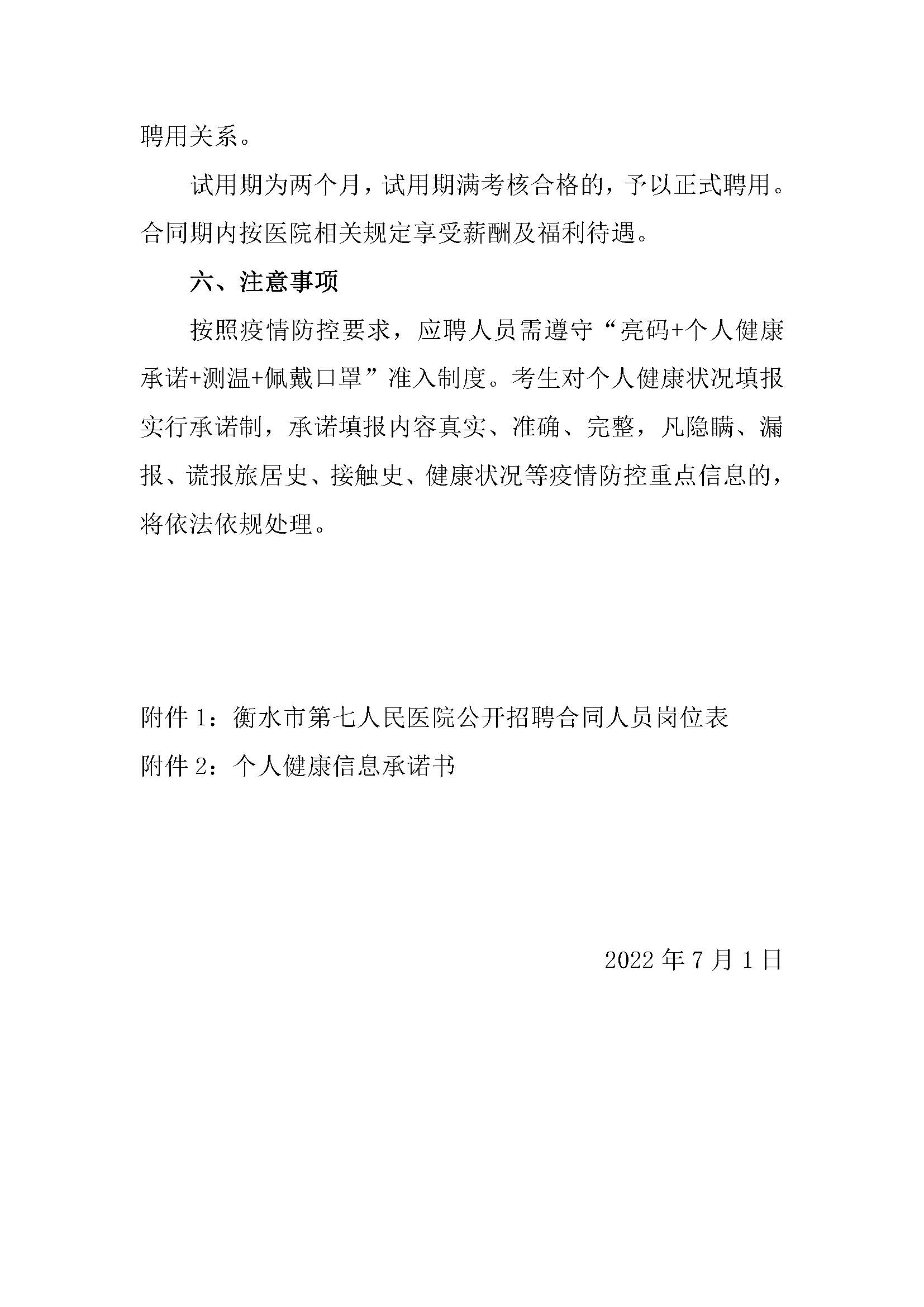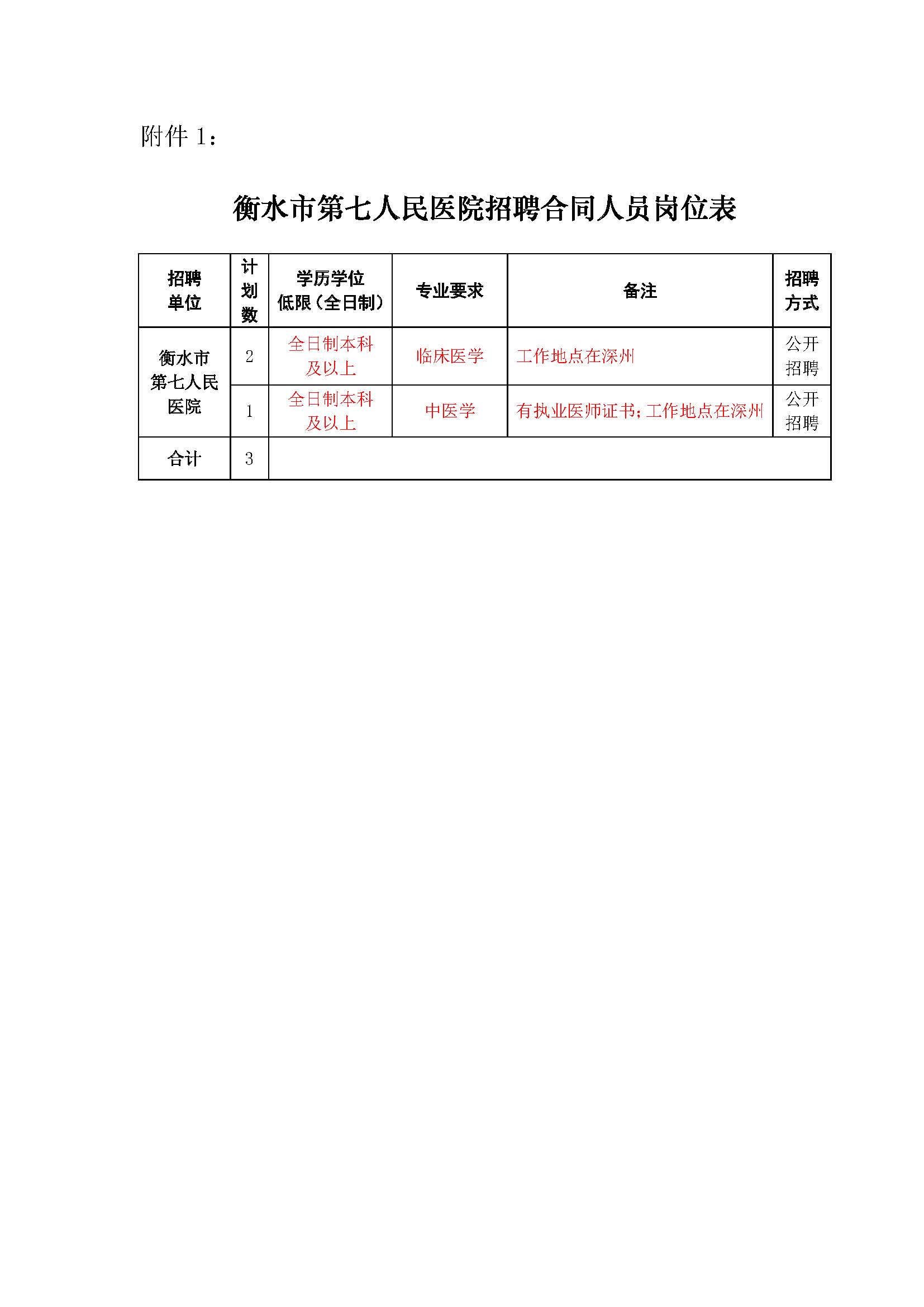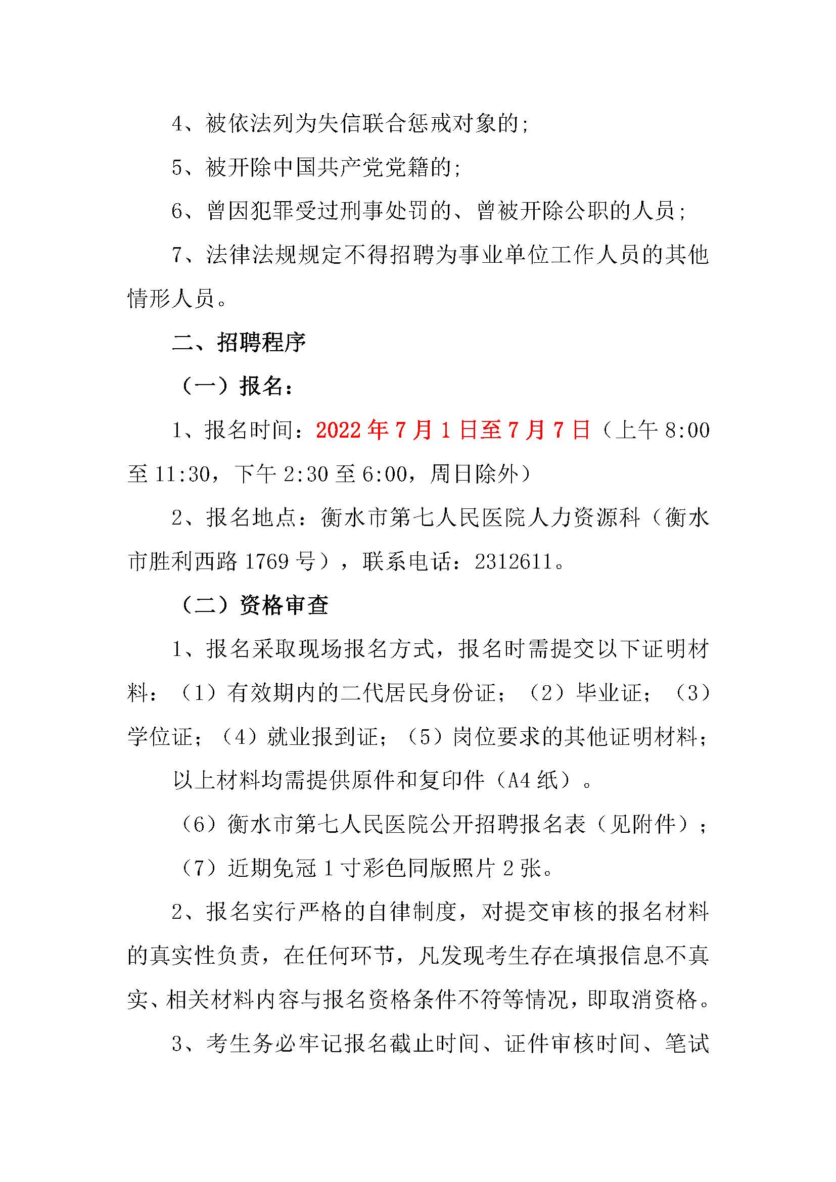 衡水市第七人民醫(yī)院2022年7月招聘合同人員3名