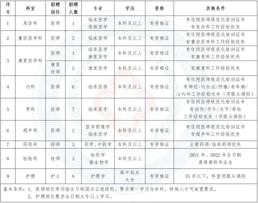 1、醫(yī)師崗位學(xué)歷:全日制國辦正規(guī)院校,要求第一學(xué)歷為本科,特殊人才可放寬要求。