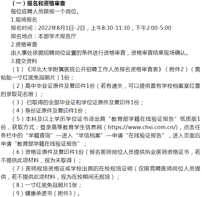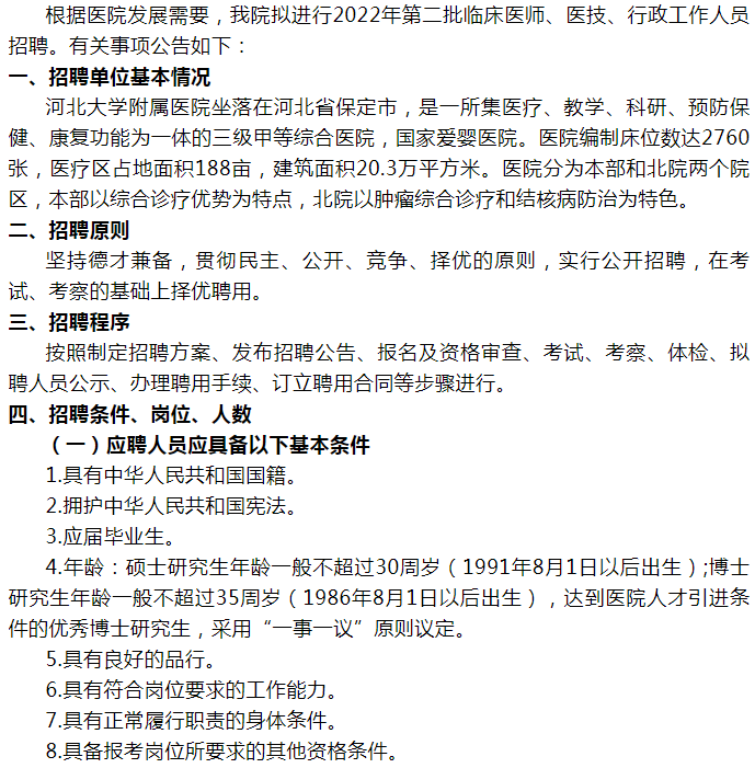 附件1:《河北大學(xué)附屬醫(yī)院2022年第二批公開招聘臨床醫(yī)師、醫(yī)技、行政工作人員崗位條件表》