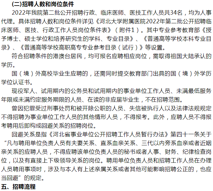 河北大學(xué)附屬醫(yī)院2022年第二批招聘臨床醫(yī)師、醫(yī)技、行政工作人員34名