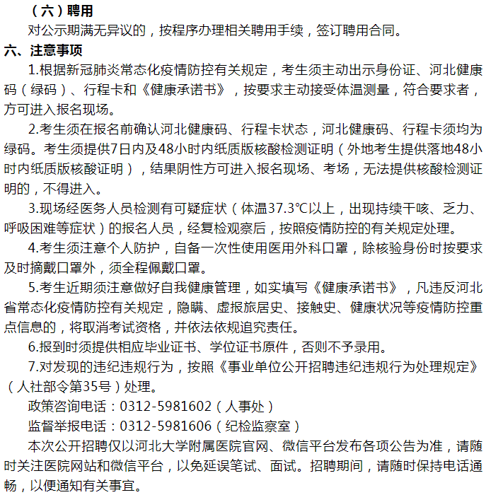附件3:《河北大學(xué)附屬醫(yī)院2022年人員招聘考生健康承諾書》