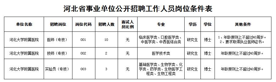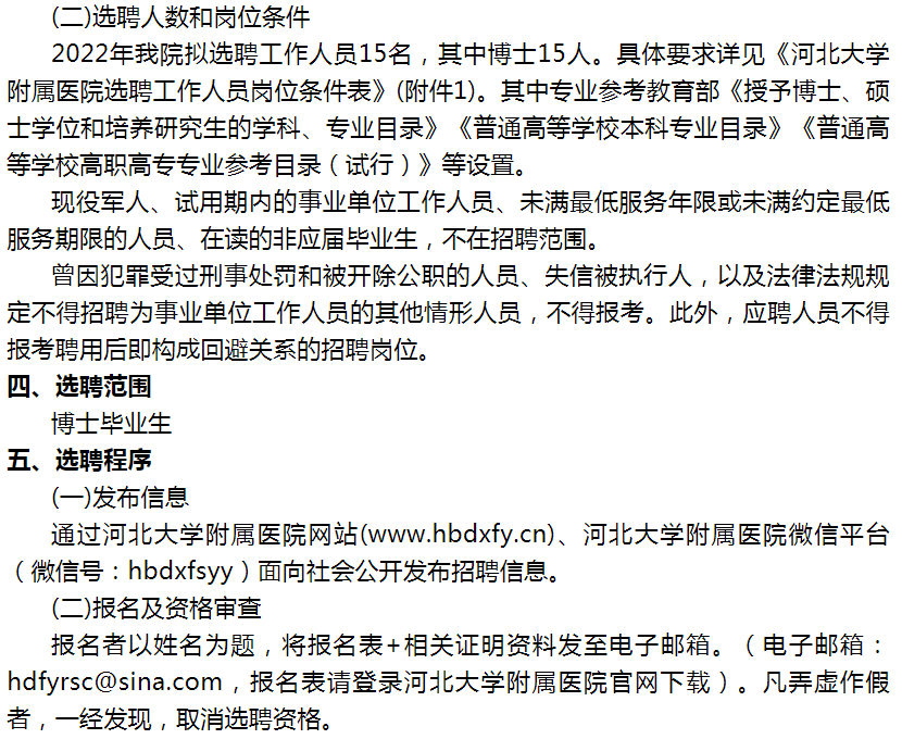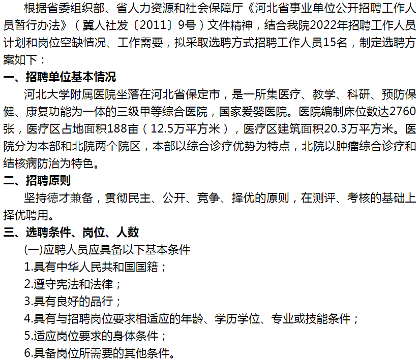 河北大學(xué)附屬醫(yī)院選聘工作人員15名(博士畢業(yè)生)