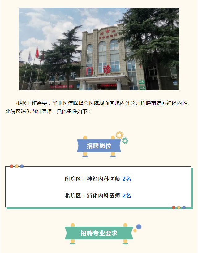 河北省邯鄲市華北醫(yī)療健康集團(tuán)峰峰總醫(yī)院南、北院區(qū)招聘醫(yī)師4人
