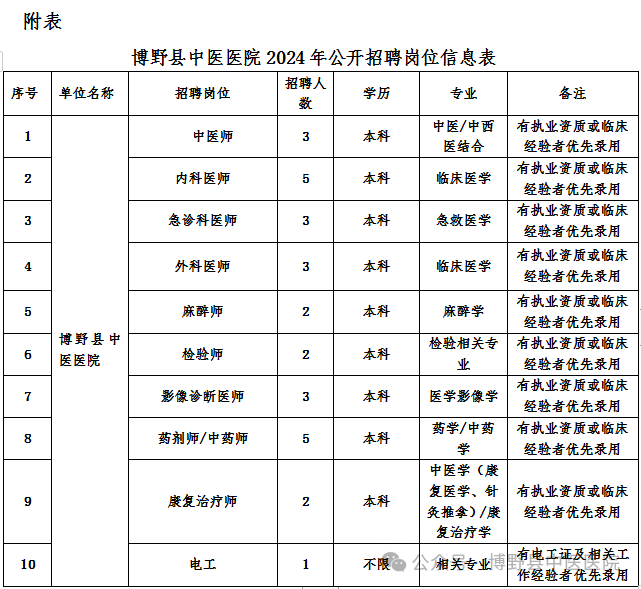 保定市博野縣中醫(yī)醫(yī)院2024年招工作人員29人