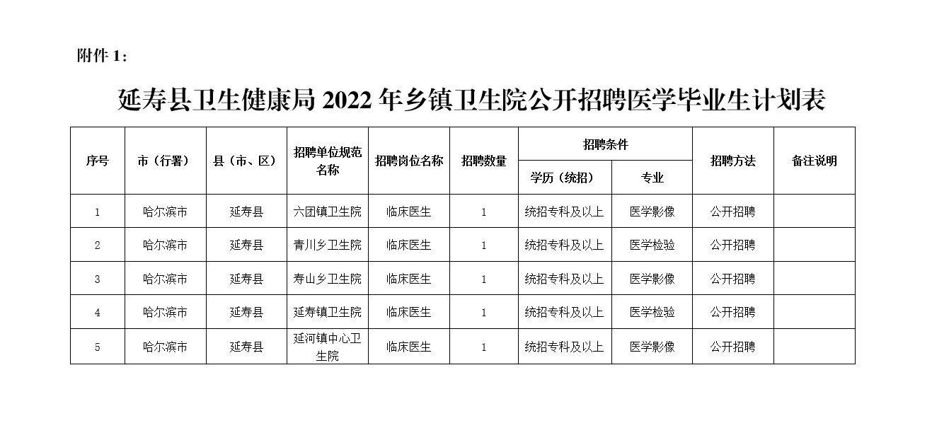 黑龍江省哈爾濱市延壽縣2022年鄉(xiāng)鎮(zhèn)衛(wèi)生院招聘醫(yī)學(xué)畢業(yè)生5名