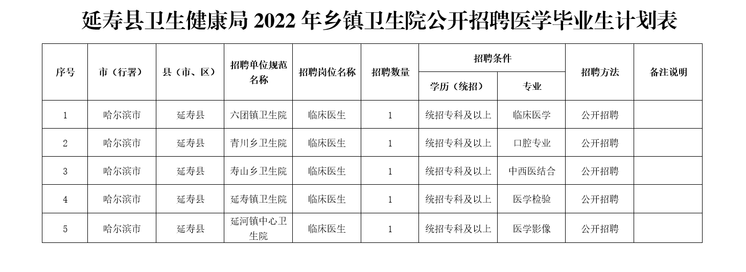 黑龍江省哈爾濱市延壽縣鄉(xiāng)鎮(zhèn)衛(wèi)生院2022年招聘醫(yī)學(xué)畢業(yè)生5名