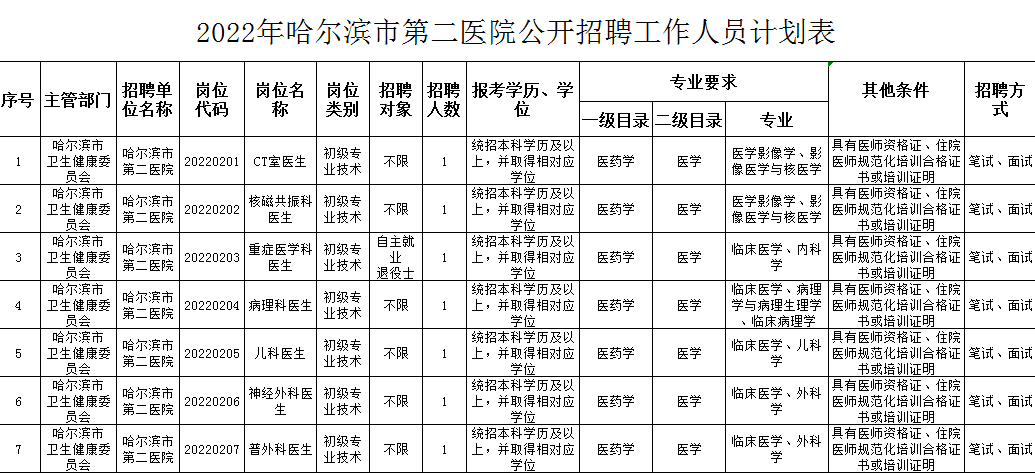 哈爾濱市第二醫(yī)院招聘編制內(nèi)高層次人才8人、工作人員7人