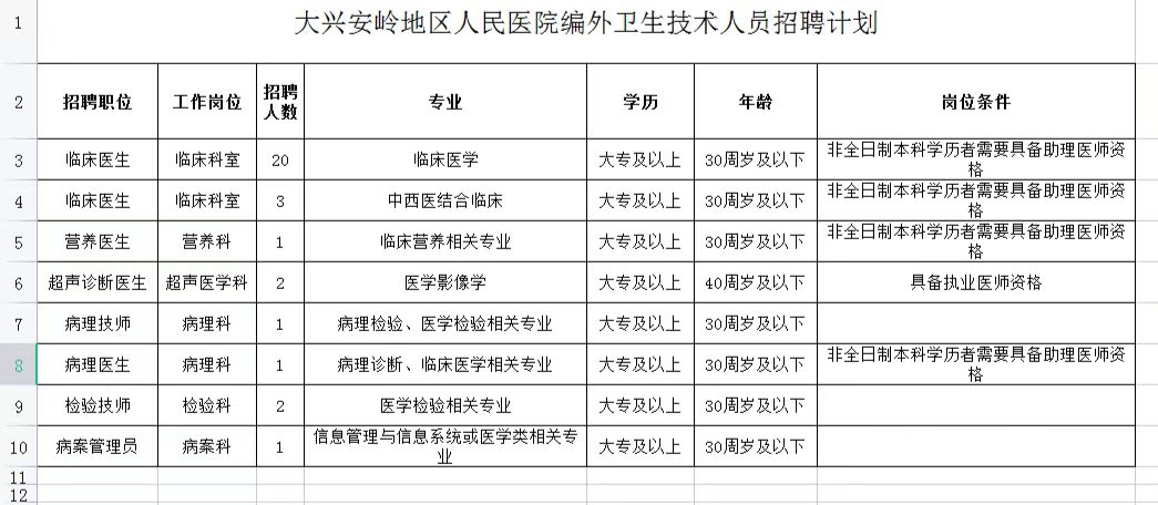詳見《大興安嶺地區(qū)人民醫(yī)院編外衛(wèi)生技術(shù)人員招聘計劃》(附件)。