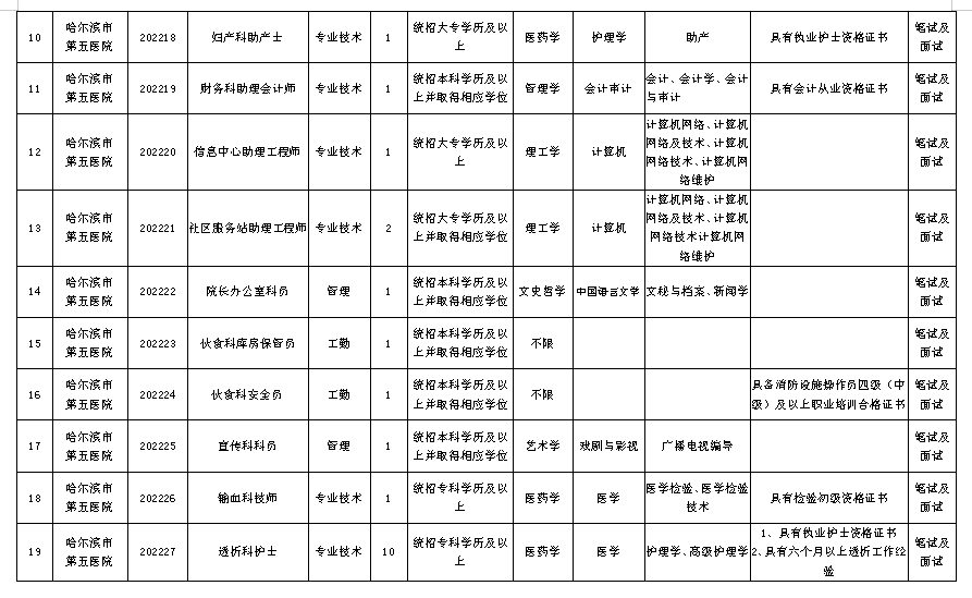 黑龍江省哈爾濱市第五醫(yī)院2022年12月招聘編外合同制工作人員81人