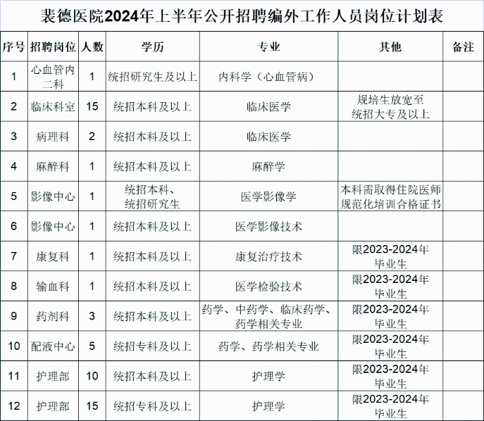 為加強(qiáng)醫(yī)院人才隊(duì)伍建設(shè),推動(dòng)醫(yī)院高質(zhì)量發(fā)展,結(jié)合2024年度招聘計(jì)劃,決定在2024年上半年面向社會(huì)公開招聘編外工作人員,具體公告如下:
