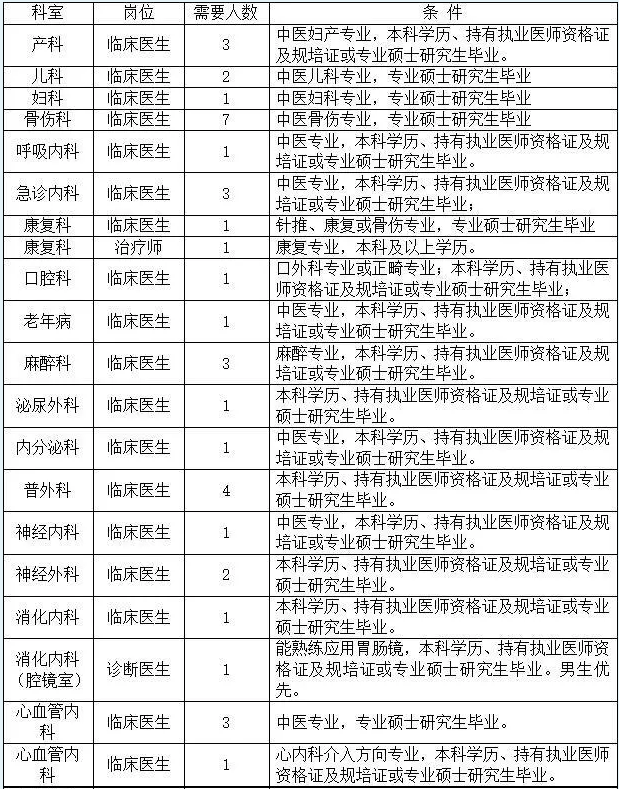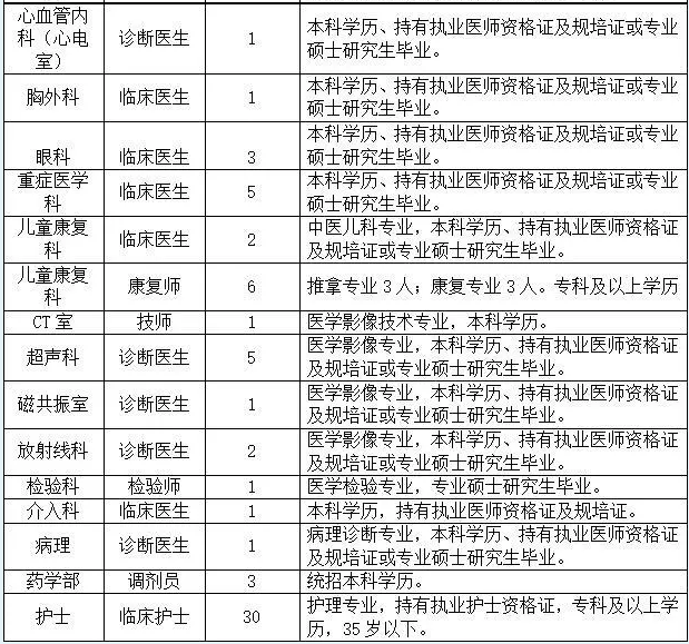 4、 符合招聘崗位要求的專業(yè)、學(xué)歷學(xué)位、技能條件,持有執(zhí)醫(yī)師資格證、規(guī)培證、碩士研究生及以上學(xué)歷畢業(yè)證者優(yōu)先;