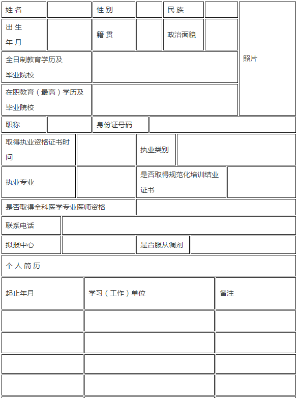 2、2019年社區(qū)衛(wèi)生服務中心招聘醫(yī)療專業(yè)技術人員登記表